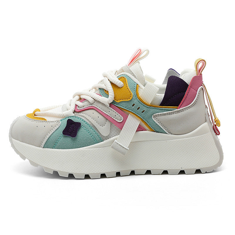 - Stylische Farbakzente: Mit einem bunten Mix aus verschiedenen Farben und Texturen sind diese Sneakers der perfekte Begleiter für jeden Anlass.