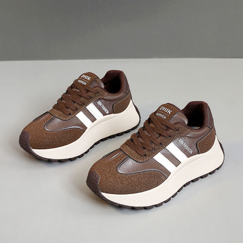 - Modisches Design: Die Kombination aus elegantem Braun und den charakteristischen weißen Streifen macht diese Sneakers zu einem echten Blickfang.