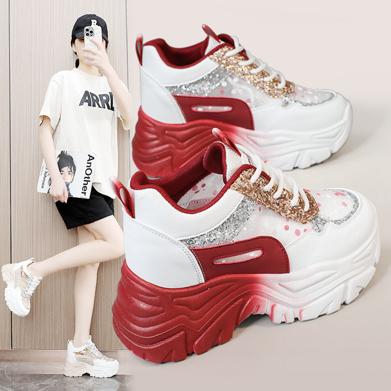 Damen Sportliche Glitter Sneakers mit trendiger Plateausohle