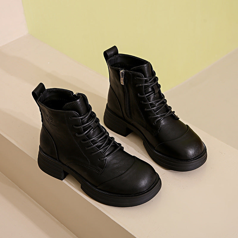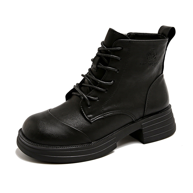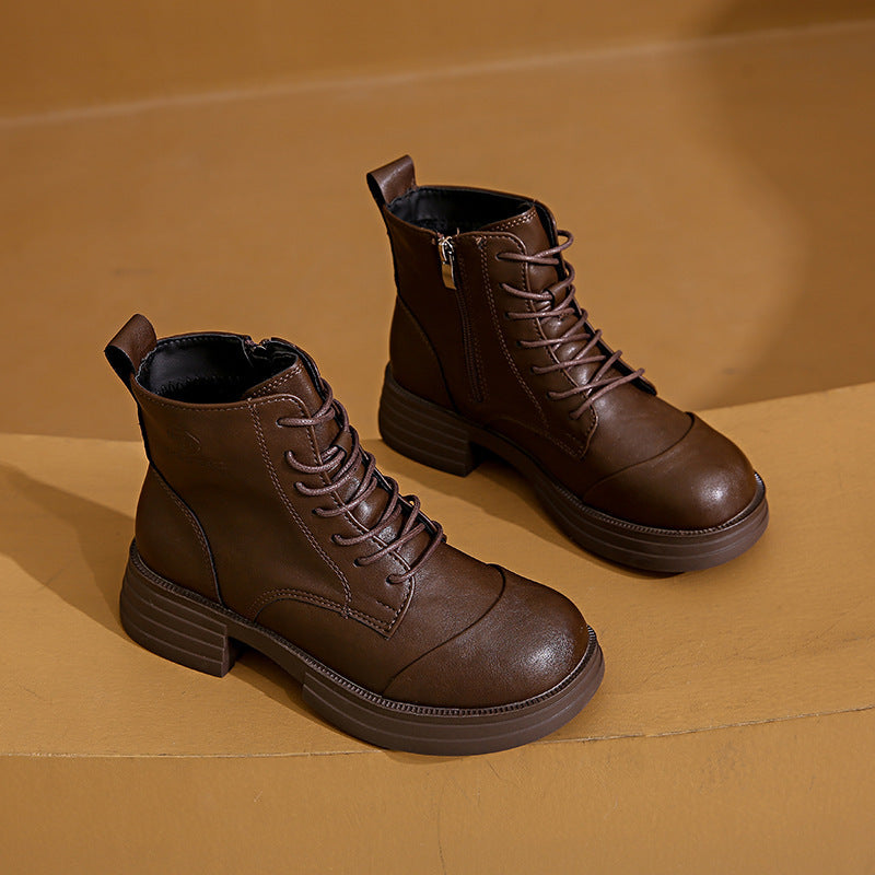 Damen stylische Schnürstiefeletten mit Reißverschluss und robustem Profil