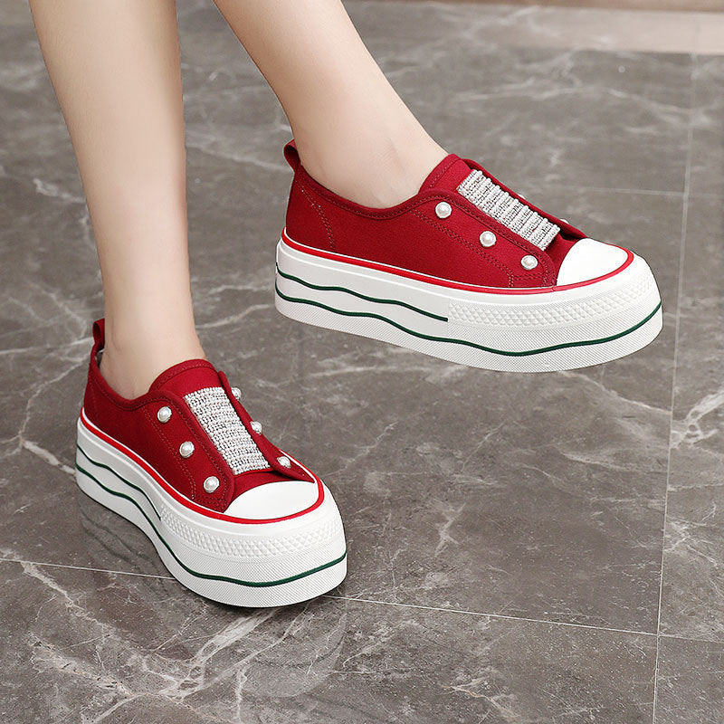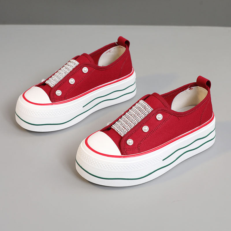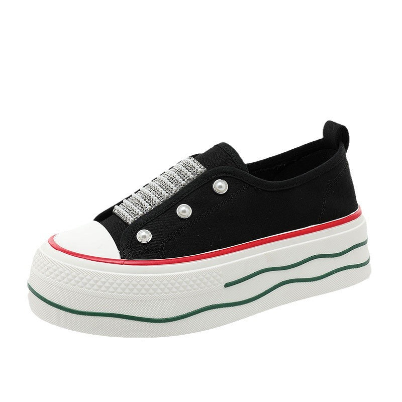 - Elegantes Design: Die Sneakers sind mit glitzernden Applikationen und Perlenverzierung ausgestattet, die jedem Outfit einen Hauch von Glamour verleihen.