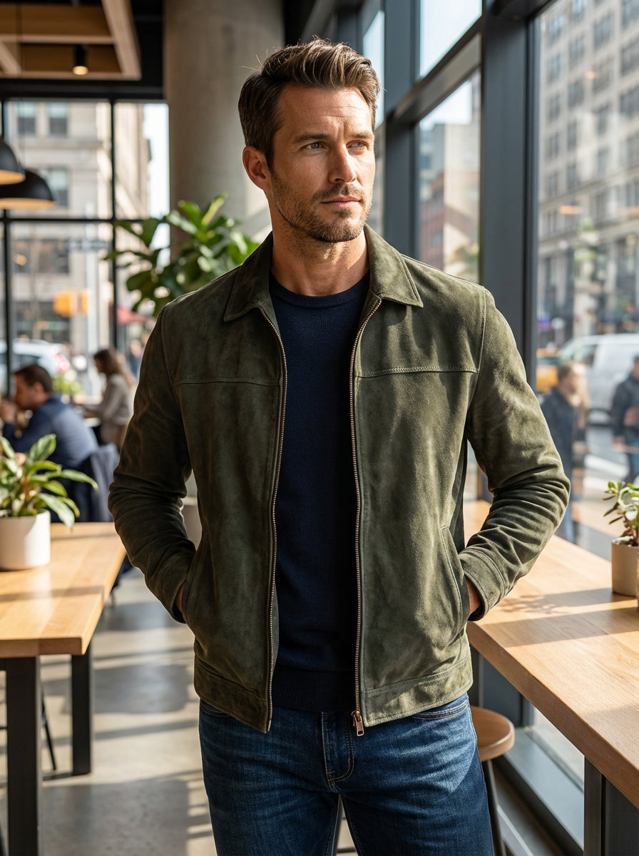 Diese Herrenjacke mit Kragen, langen Ärmeln und durchgehendem Reißverschluss besticht durch ein zeitloses Design und klare Linien. Der Kragen verleiht der Jacke Struktur, während der Frontreißverschluss für einfaches An- und Ausziehen sorgt. Das Modell eignet sich ideal für den Alltag und lässt sich vielseitig mit Jeans, Stoffhosen oder Freizeit-Outfits kombinieren.