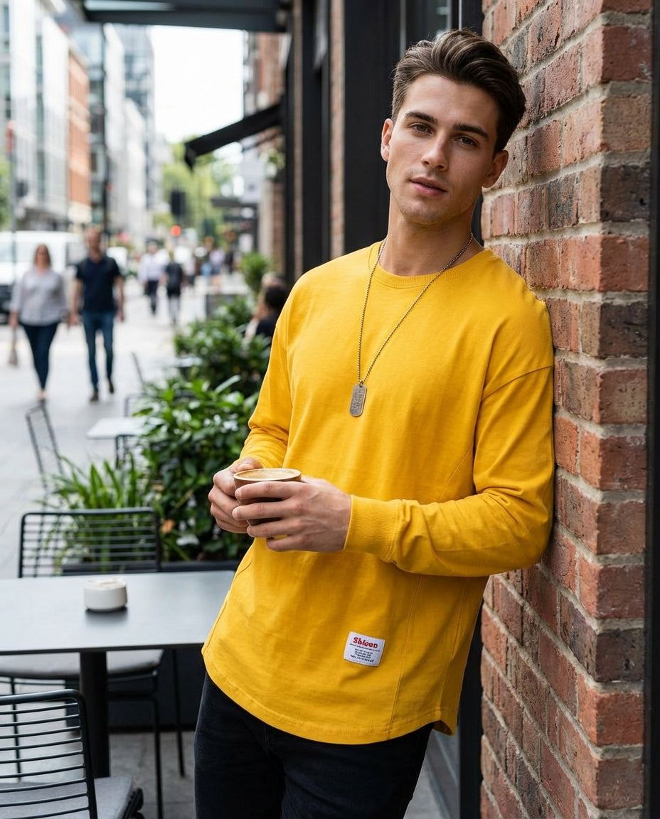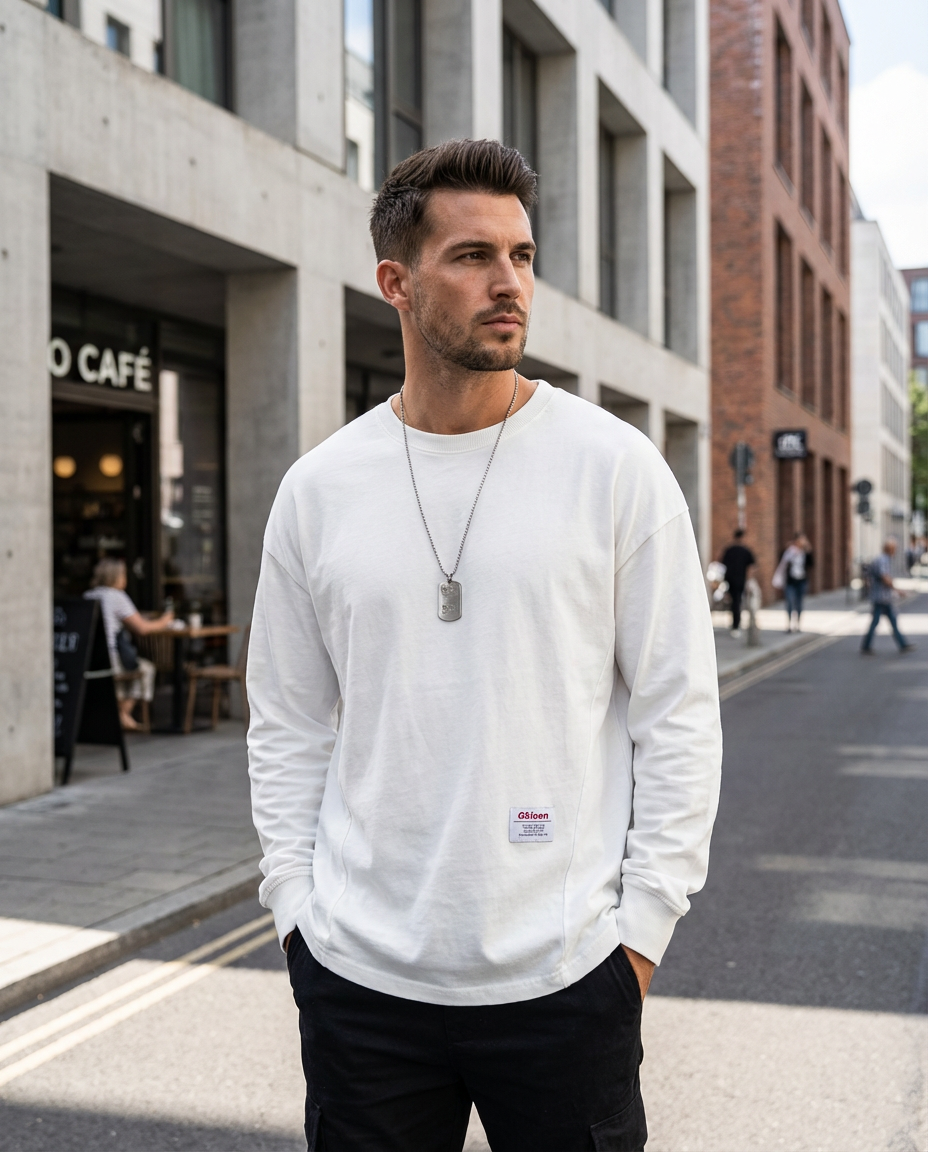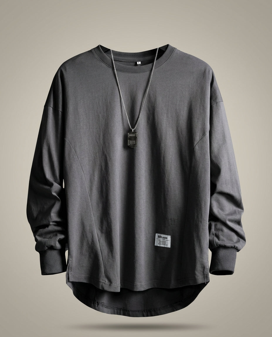 Dieses Modell überzeugt durch eine großzügige Silhouette und klare Linien. Die weite Form sorgt für eine lockere Optik, während die überschnittenen Schultern dem Design eine zeitgemäße Note verleihen. Der klassische Ausschnitt ergänzt das Gesamtbild und macht das Oberteil vielseitig tragbar im Alltag oder in der Freizeit.