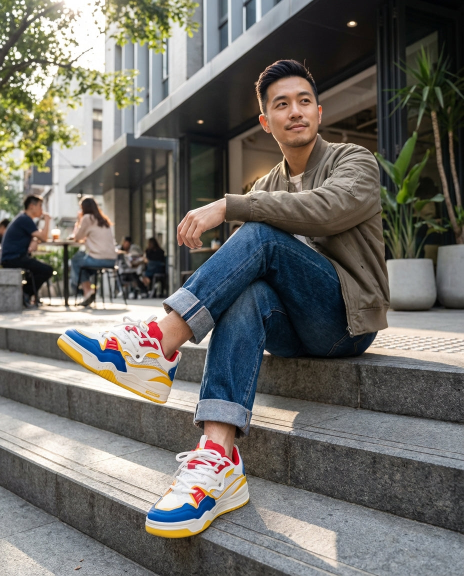 Diese Herren-Sneaker mit niedriger Schnittform und auffälliger dicker Sohle setzen ein klares Statement im Alltag. Die klassische Schnürung sorgt für eine anpassbare Passform, während die robuste Sohlenoptik dem Design Charakter verleiht. Ideal für Freizeit, Stadtgänge oder moderne Streetwear-Kombinationen – sie lassen sich vielseitig zu Jeans oder lässigen Hosen tragen.