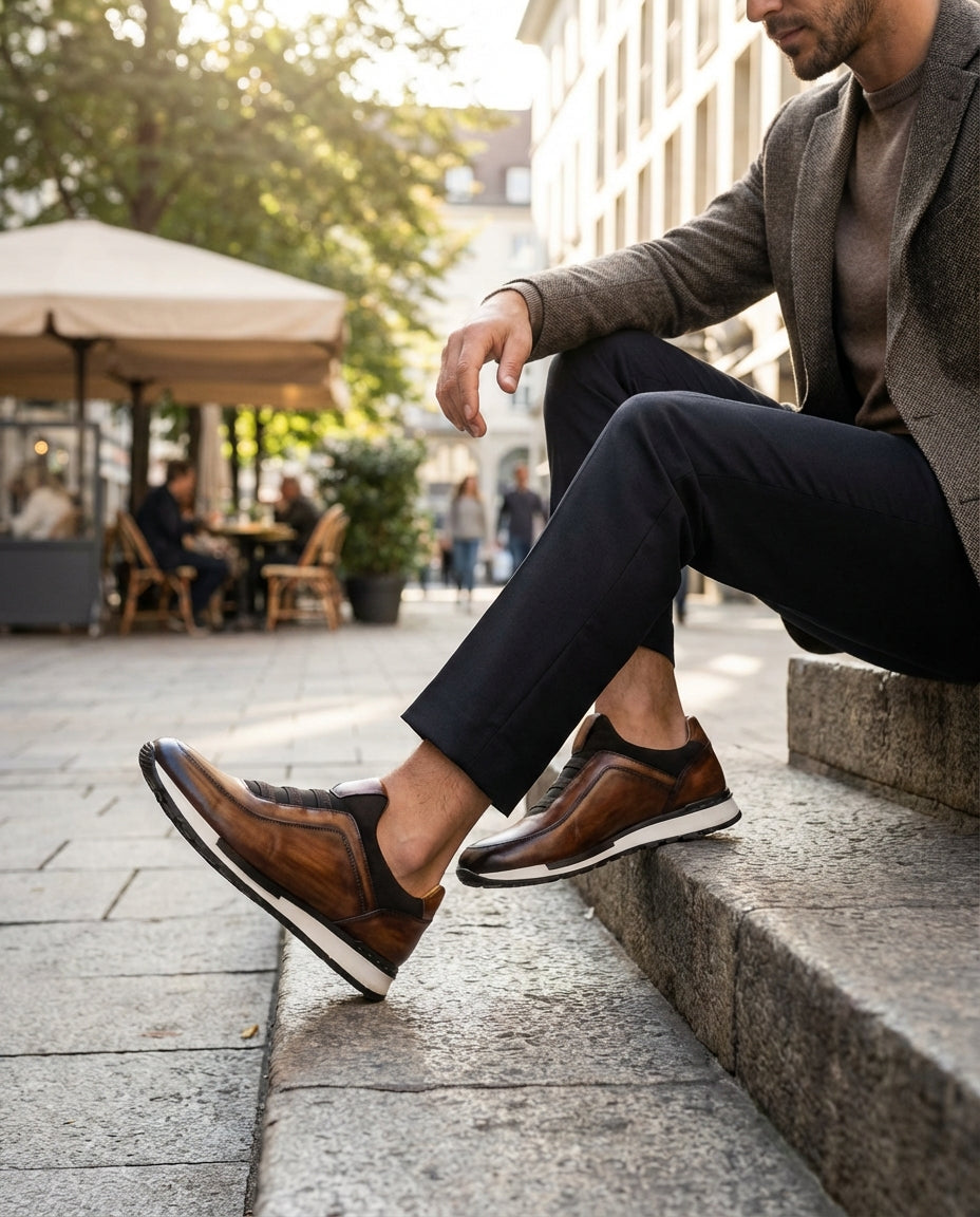 Diese Herren-Sneaker mit niedrigem Schaft sind zum Hineinschlüpfen designt und passen ideal zu Freizeitlooks. Die schlanke Form wirkt aufgeräumt und lässt sich mühelos zu Jeans, Leggings oder Kleidern kombinieren. Ob für Erledigungen, Spaziergänge oder entspannte Tage unterwegs – sie bieten einen unkomplizierten Look, der immer funktioniert.