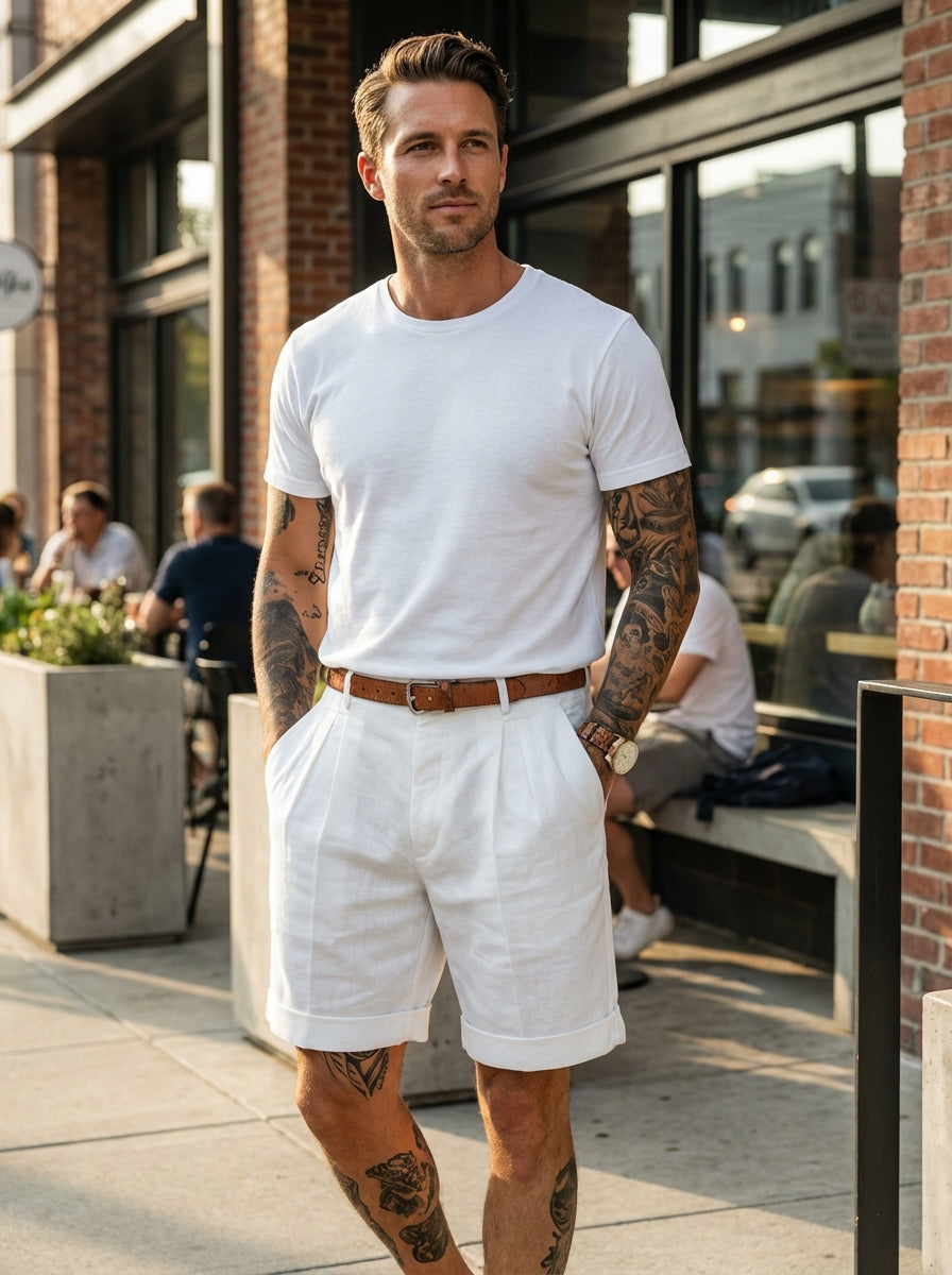 Kurze Hosen Herren Falten Schlanke Passform | Gerollter Saum